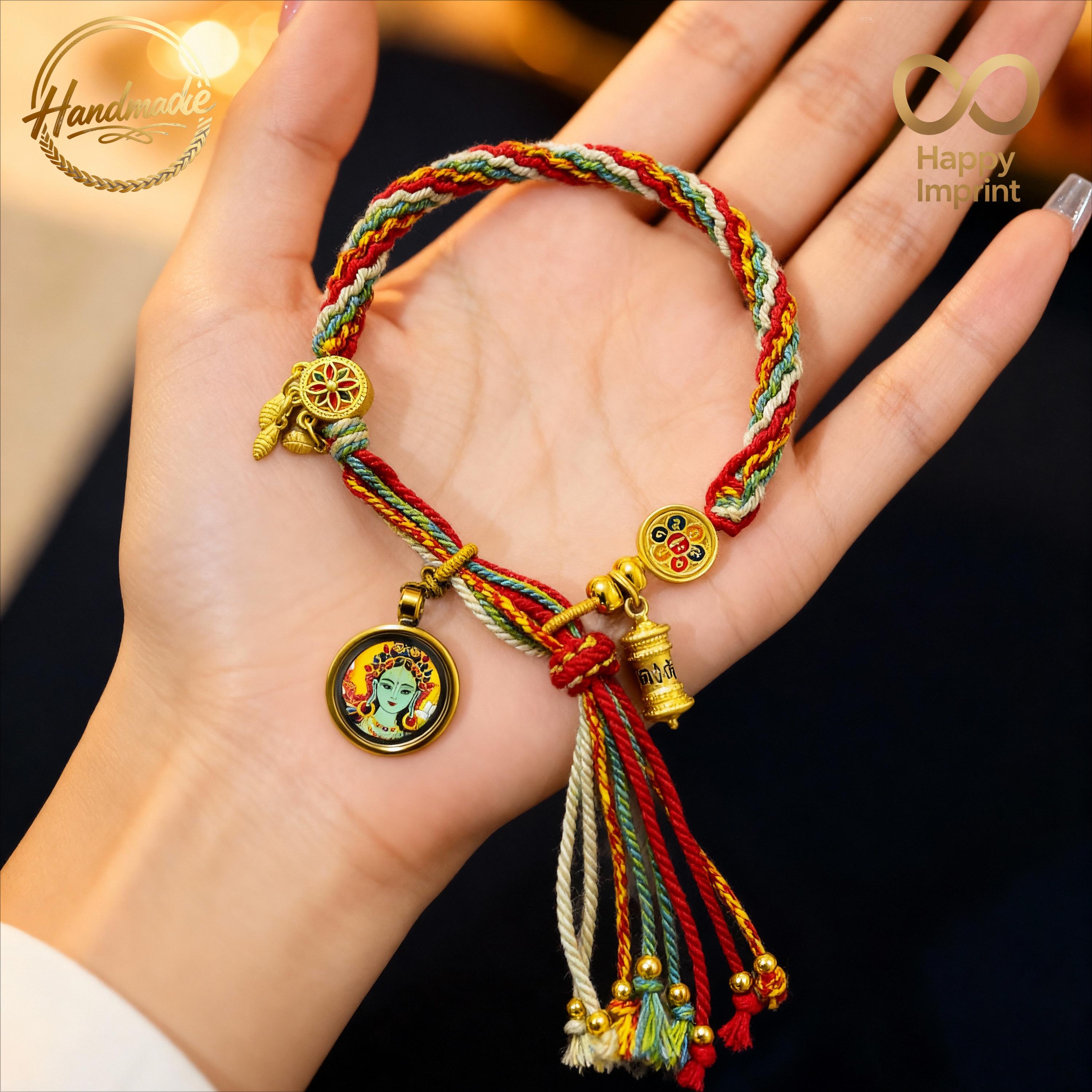 This bracelet is hand-woven using traditional Tibetan knotting techniques, carrying the energy of ancient blessings and positive intentions. In Tibetan and Buddhist cultures, Green Tara (a revered female deity in Tibetan Buddhism) is believed to ward off negative energy, attract good fortune, guard wealth, and enhance love and connection. Each knot is woven with focus and care, ultimately transforming into a powerful amulet—one that helps boost your courage, protect your safety, and achieve spiritual harmony. Whether you keep it for yourself or give it to someone you cherish, it makes an ideal choice.
