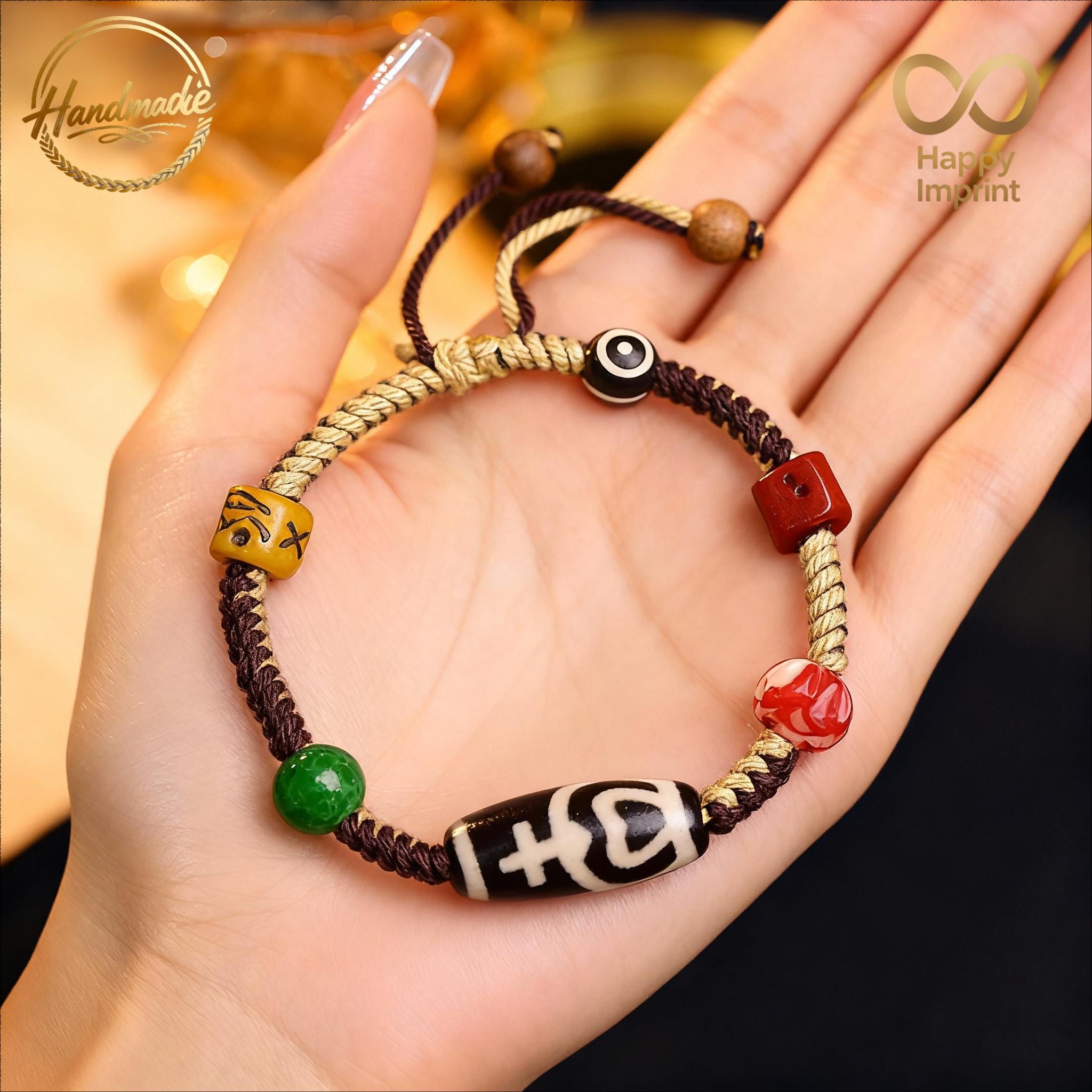 Dzi Agate Bead Bracelet | Tibetan Protection Amulet | Spiritual Wellness & Mindfulness Gift for Couples