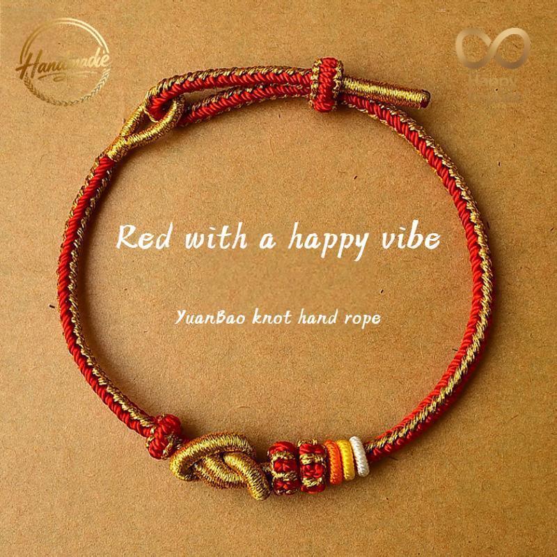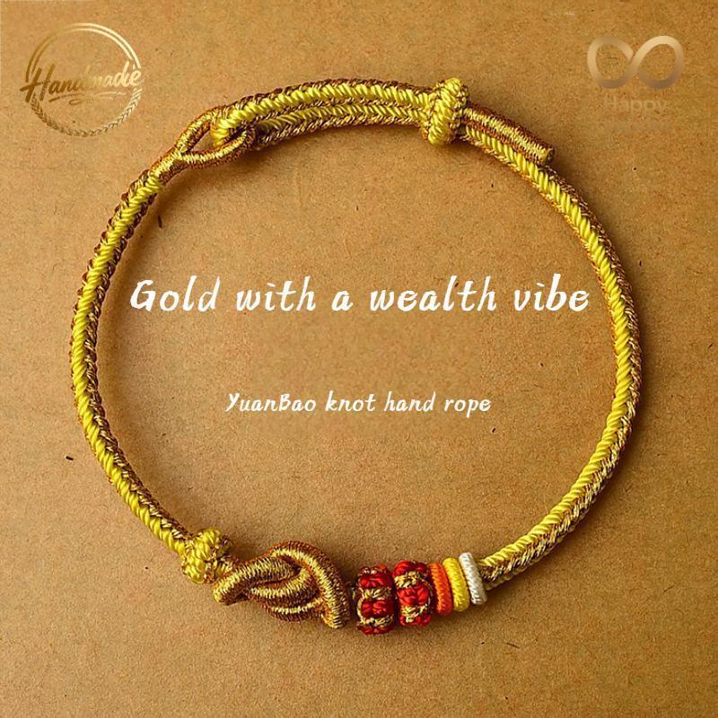 Bring prosperity and harmony into your life with this handwoven Yuanbao Knot Bracelet, a traditional Chinese lucky charm symbolizing wealth and good fortune.