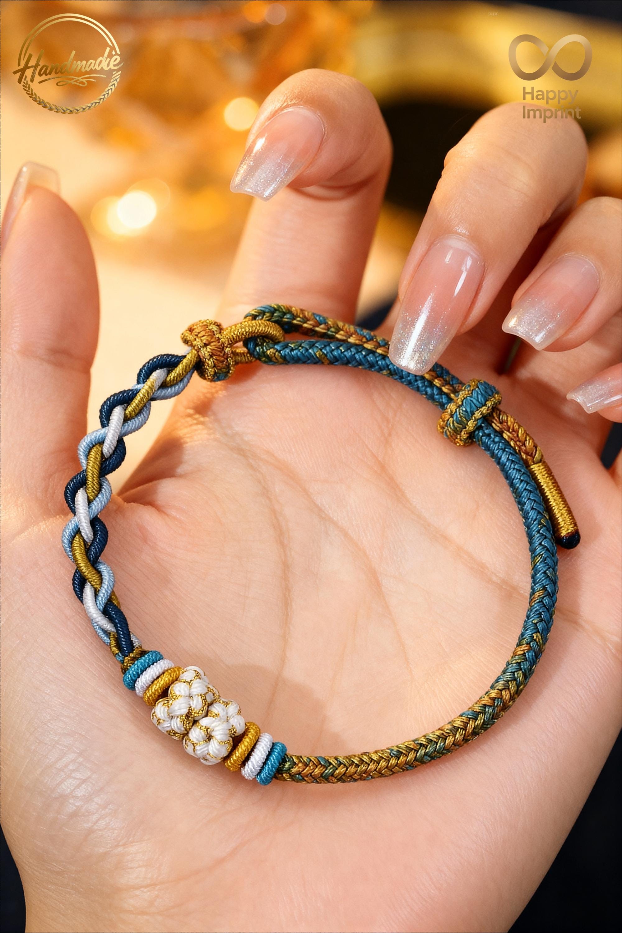 Elevate your style with this handmade woven bracelet, featuring a lucky knot design and adjustable fit. Perfect as a thoughtful gift for her or a boho accessory for yourself.