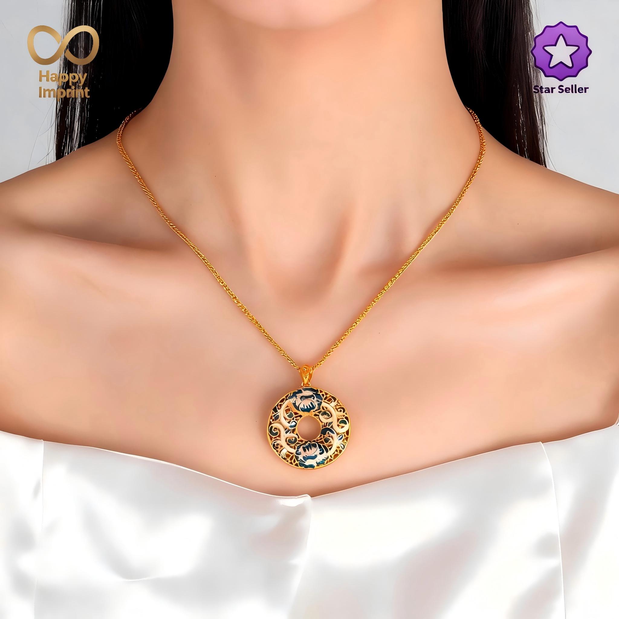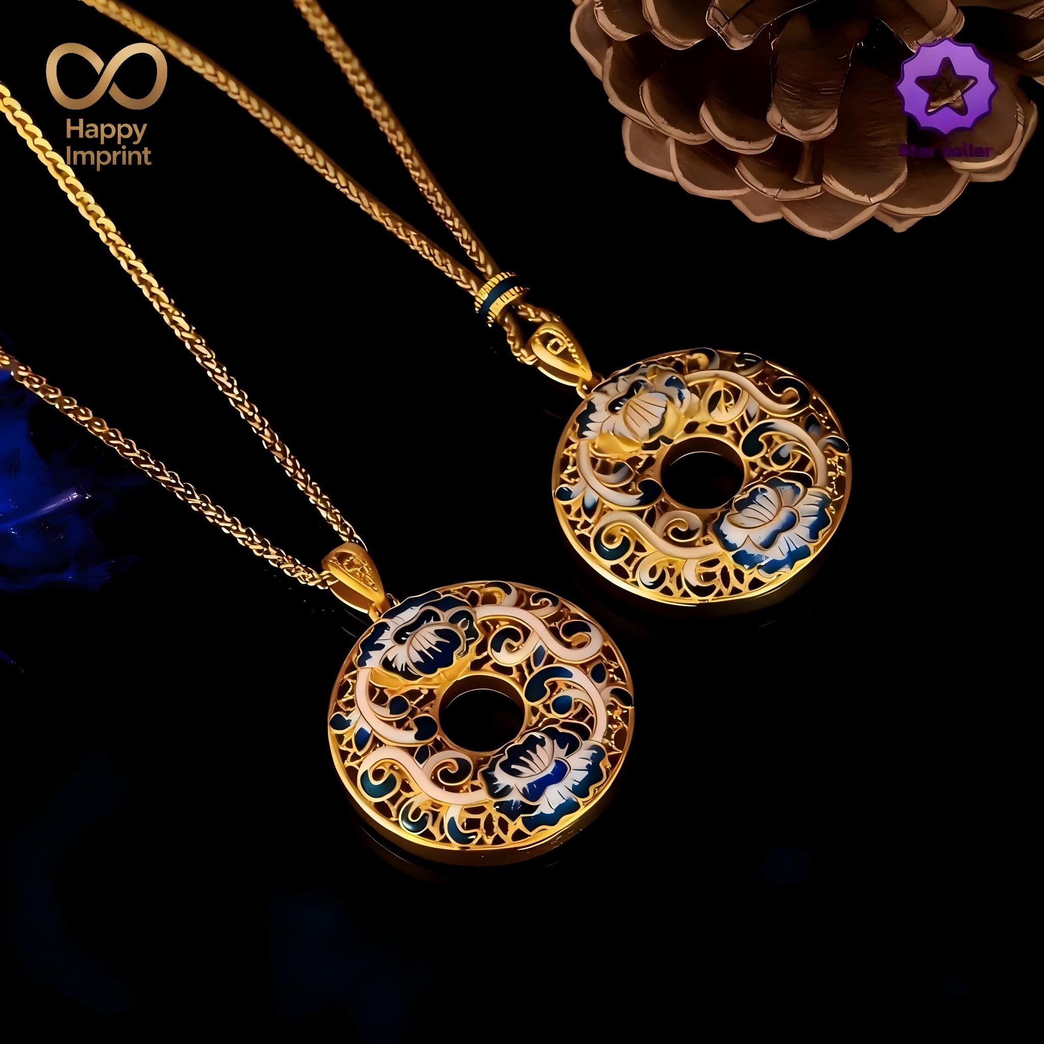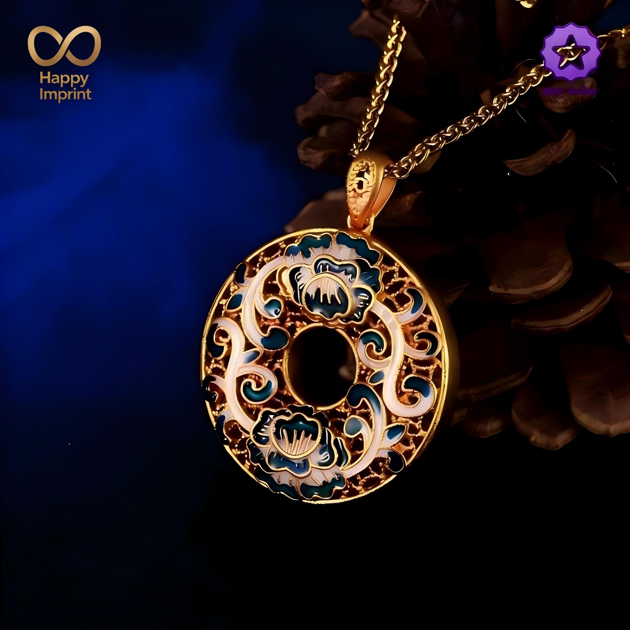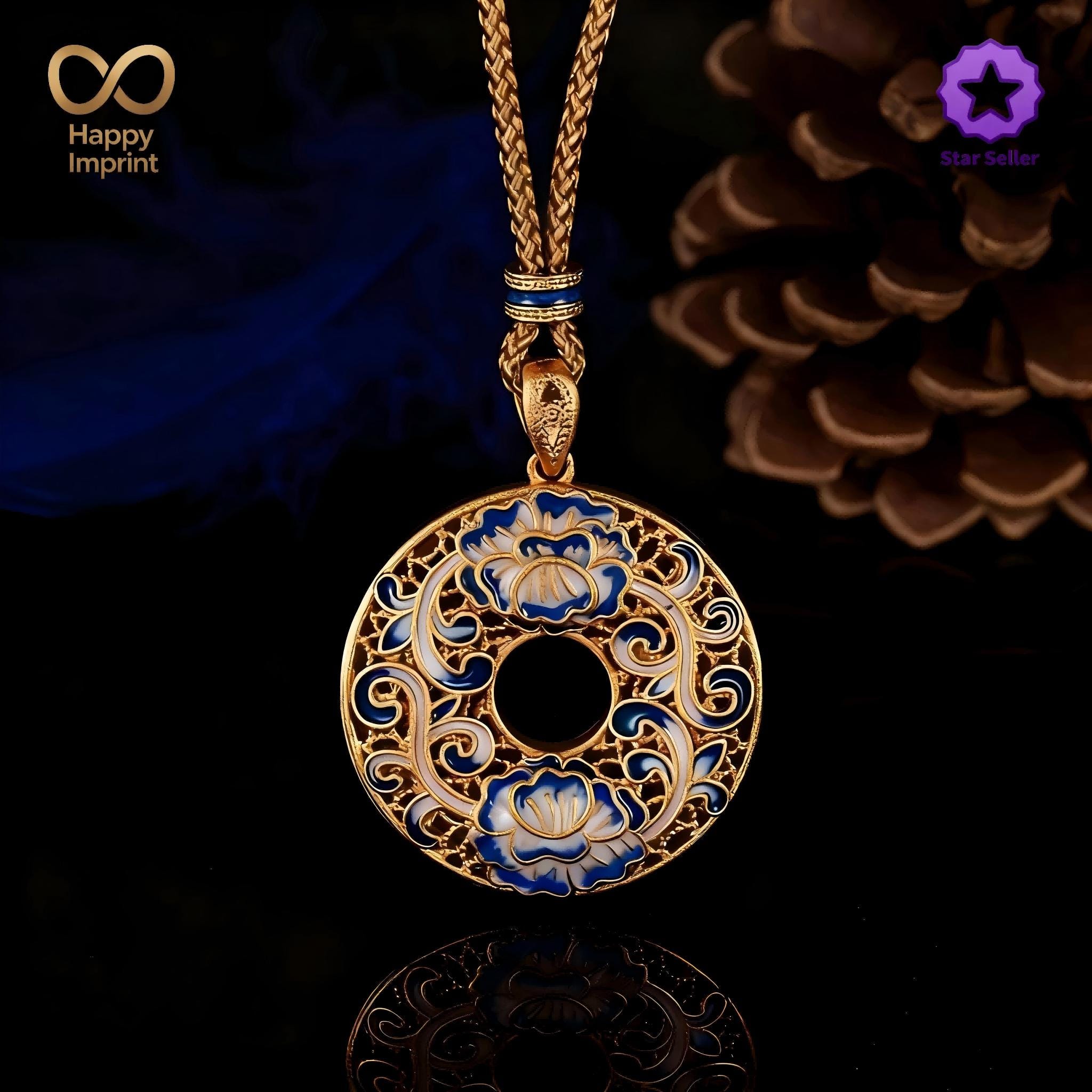 Enameled Openwork Gold-Plated Peace Disk Necklace – Adorned with intricate openwork details and vibrant enameled blue-and-white floral patterns, this piece blends classic Chinese elegance with a luxurious golden luster. It’s a stunning, timeless romantic gift for her: brimming with exquisite craftsmanship, rich texture, and heartfelt blessings.Unisex Design (Fits Men & Women)