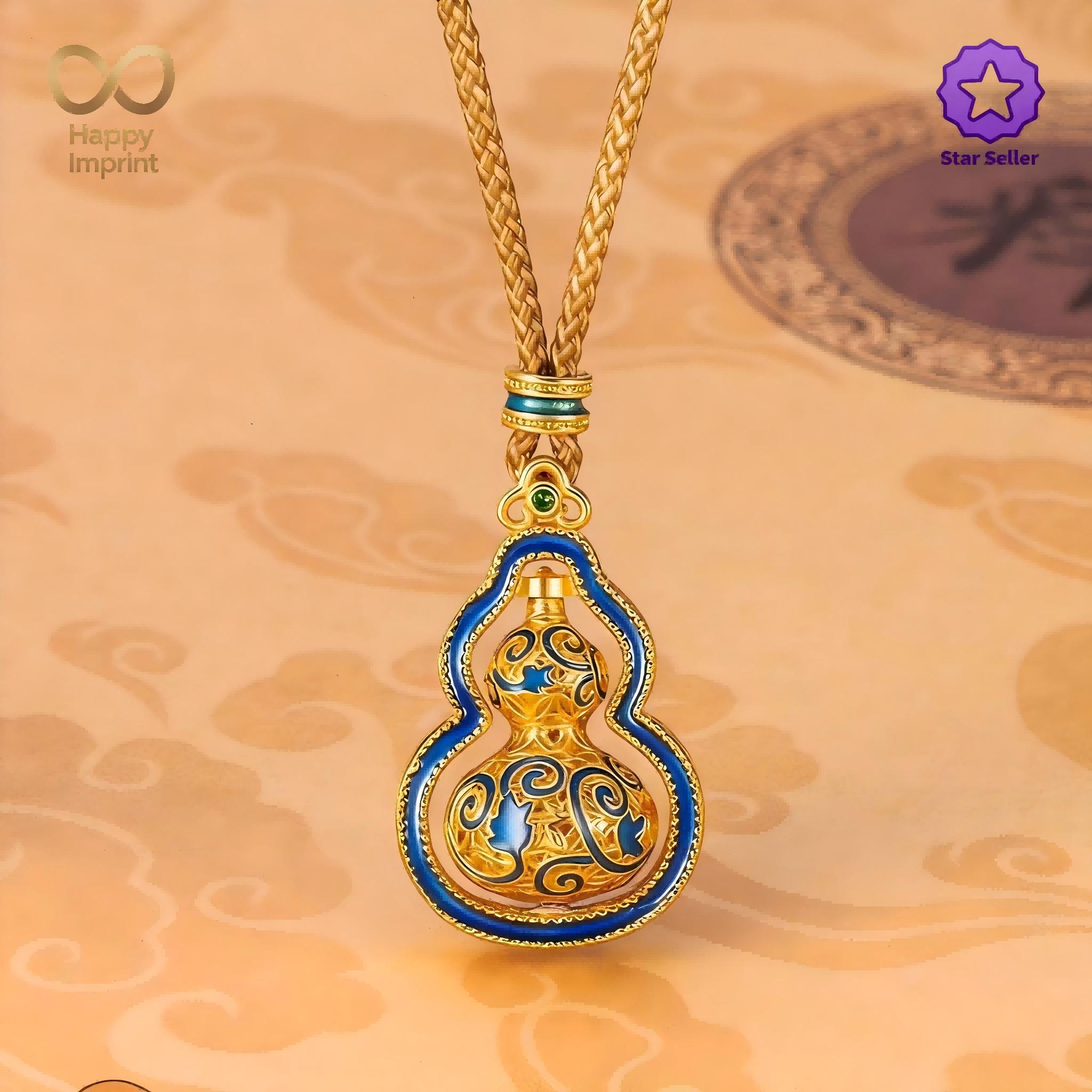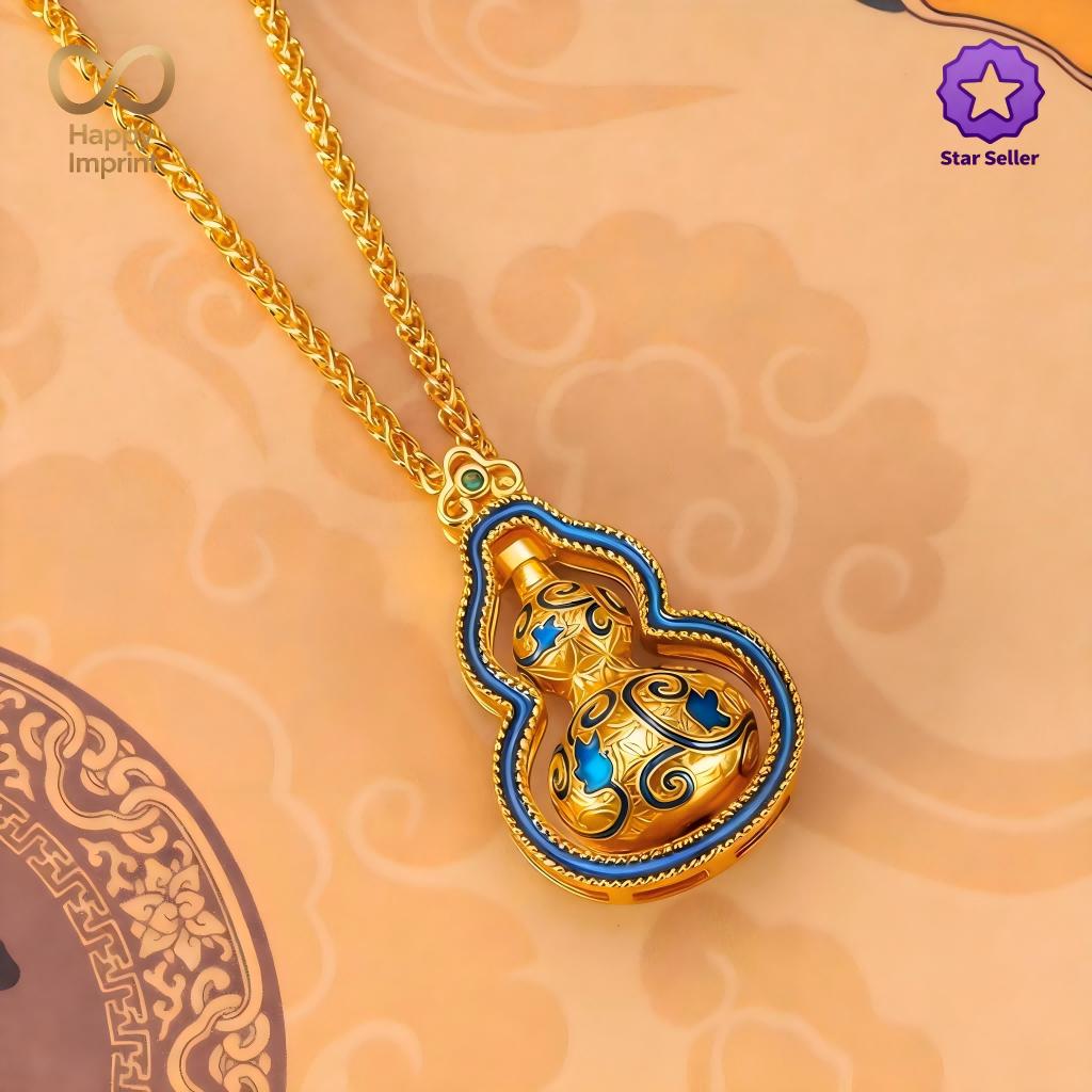 Gold-Plated Rotatable Blue Enamel Gourd Pendant Necklace with Cloud Patterns – Each piece is a one-of-a-kind work of art, featuring a unisex design that fits both men and women.