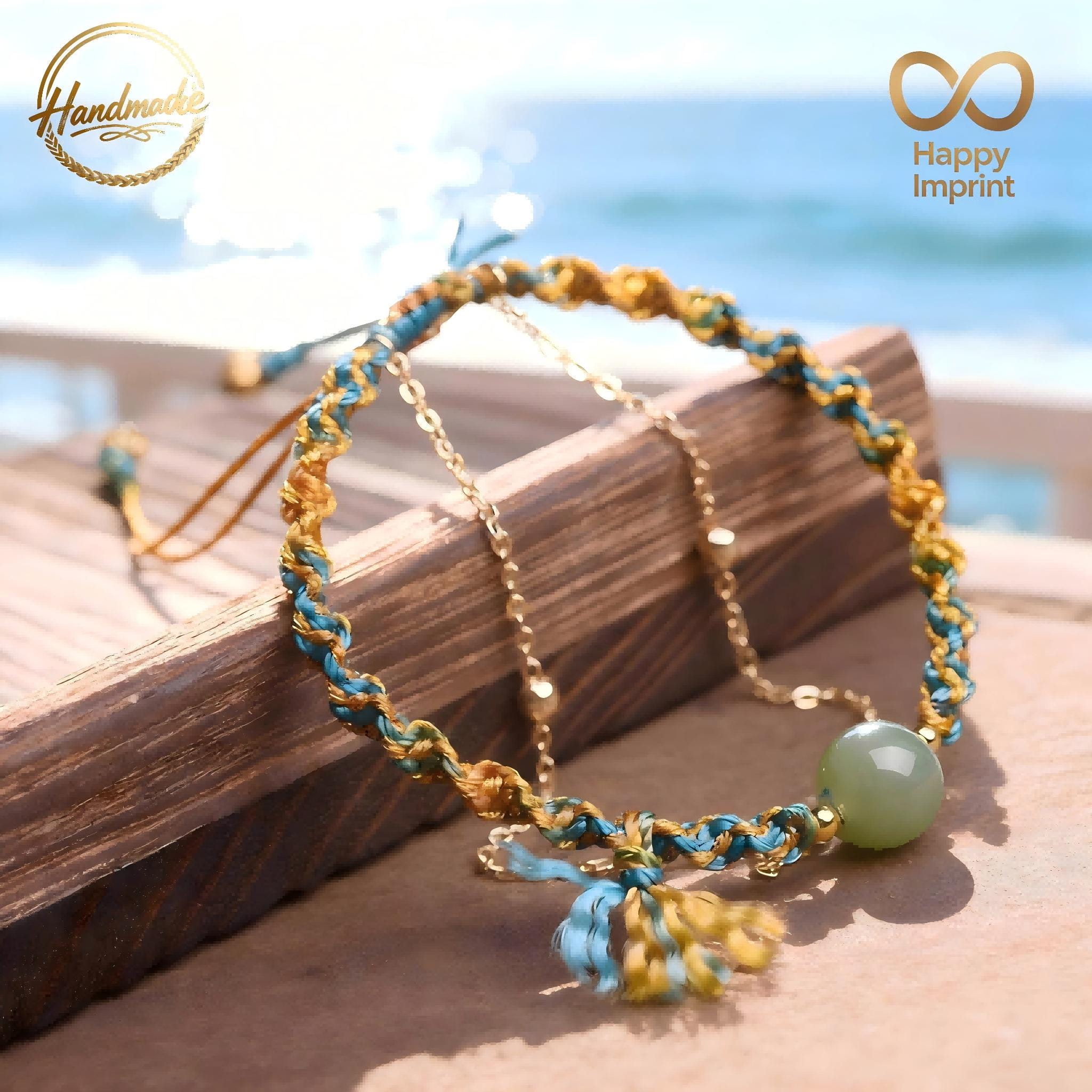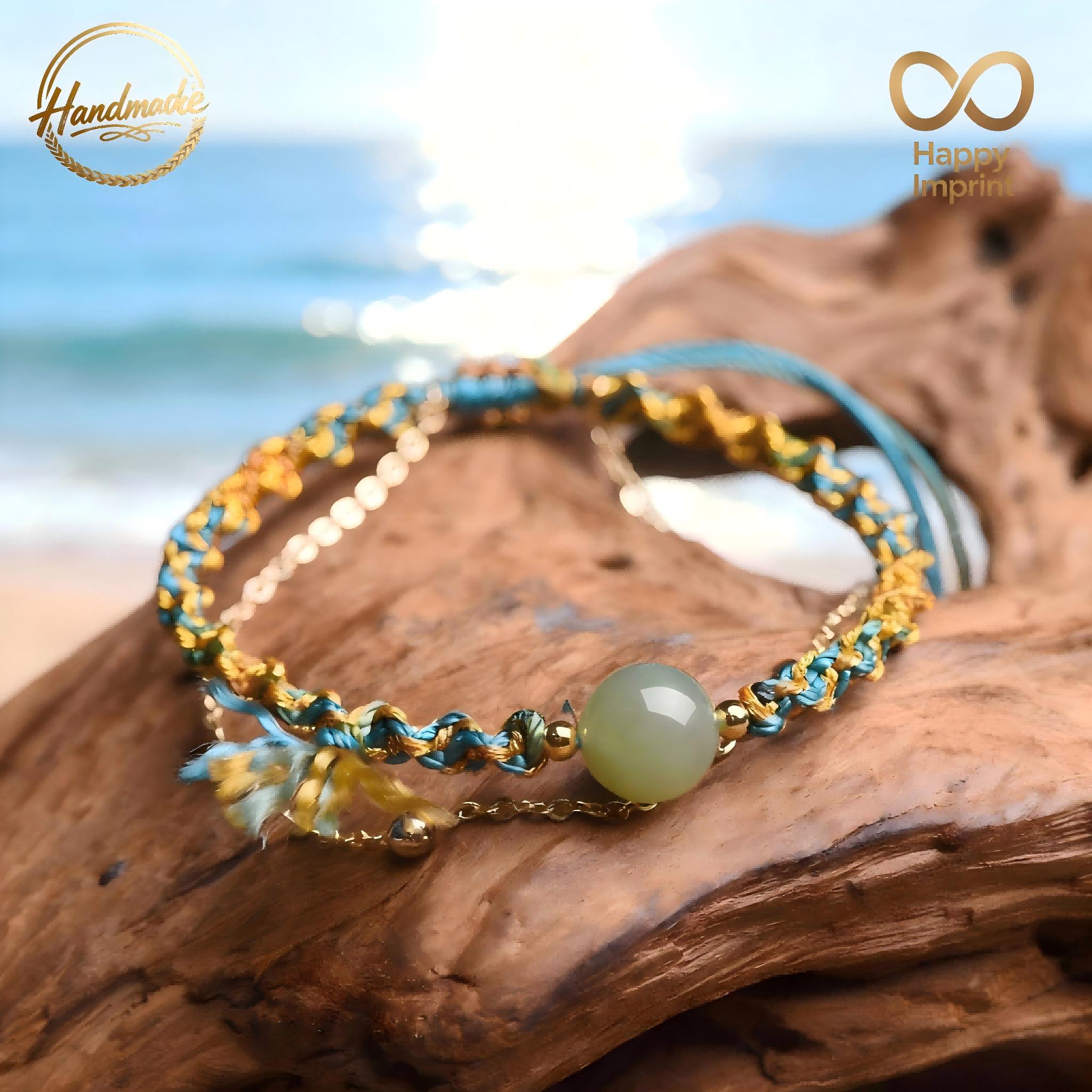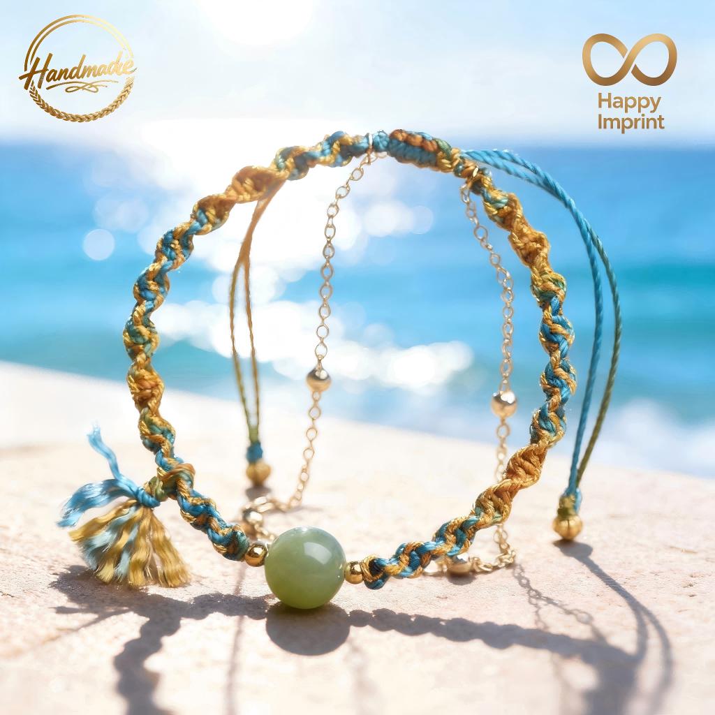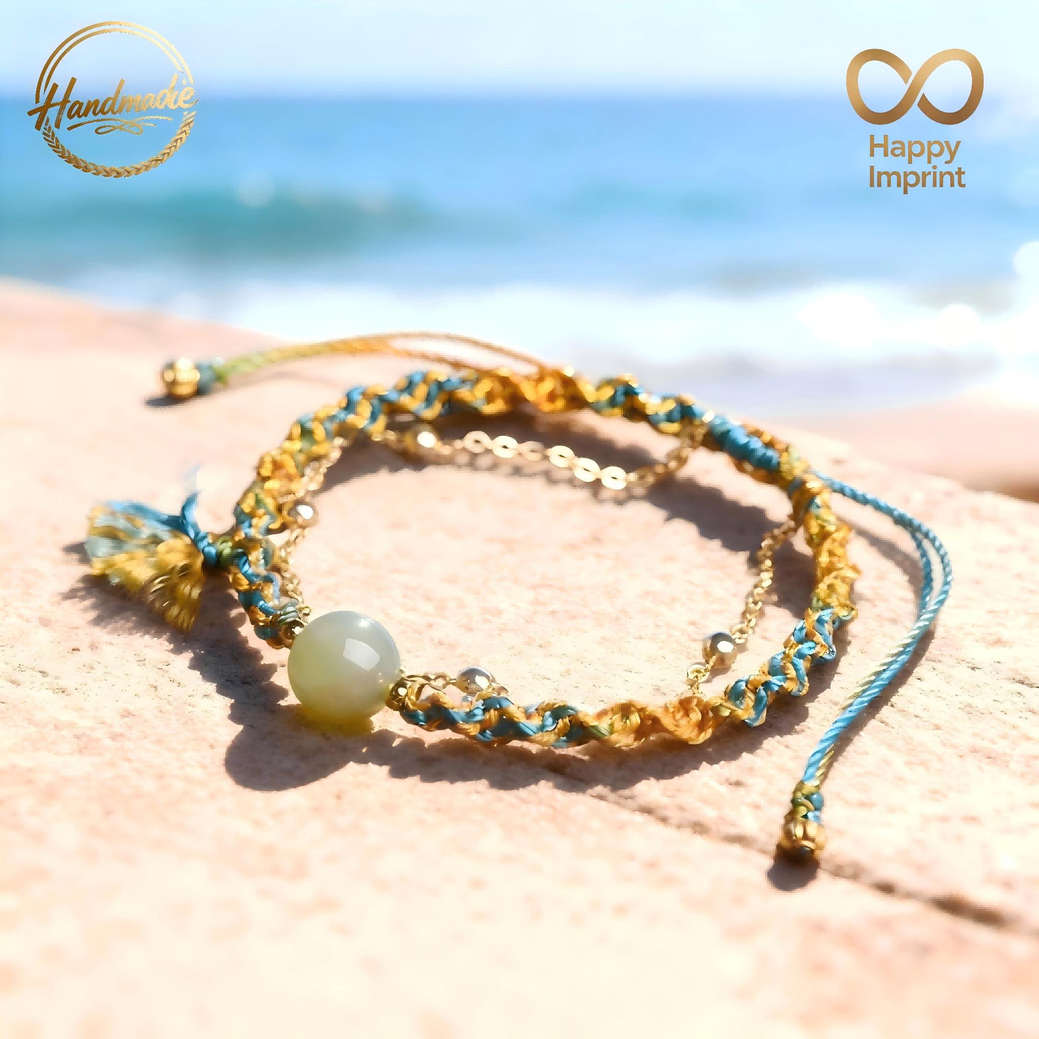 This Handmade Bohemian-Style Adjustable Multi-Colored Cord Bracelet (featuring a Hetian jade bead, delicate gold-tone chain, and tassel accent) exudes breezy coastal vibes. This charming artisanal piece is perfect for daily wear or as a thoughtful gift — don’t miss this unique treasure!